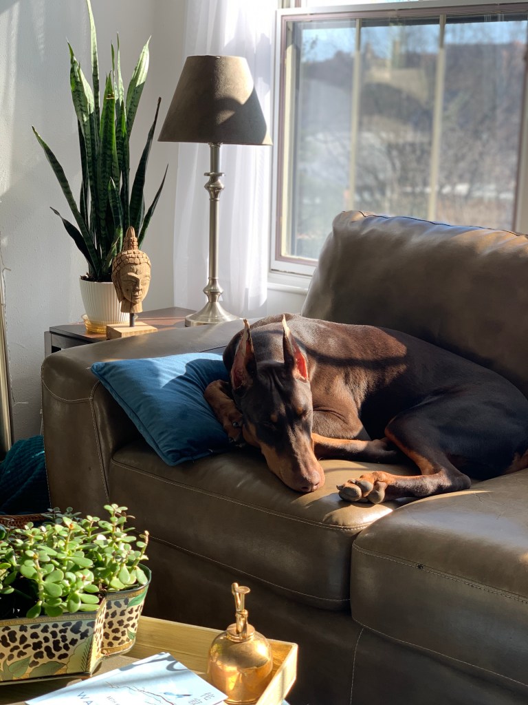 When I picked him up, he was so skinny, his coat was dull and had chestnuts on his elbows and chapped testicles (both from being confined to concrete). What happened to the raised bed he was to have or the blankets I took?