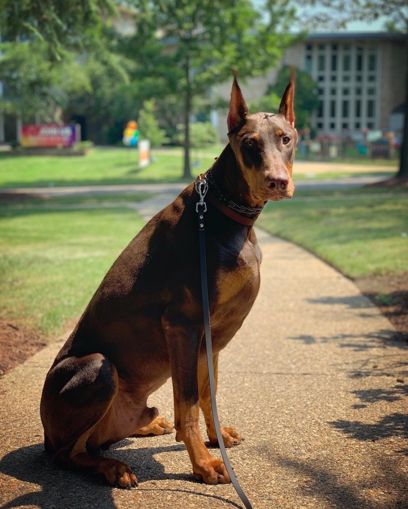 Despite the continued challenge there, Beau is doing so well with his obedience commands. We’ve been working in a nearby churchyard several afternoons a week and in a parking lot at night once it cools off.