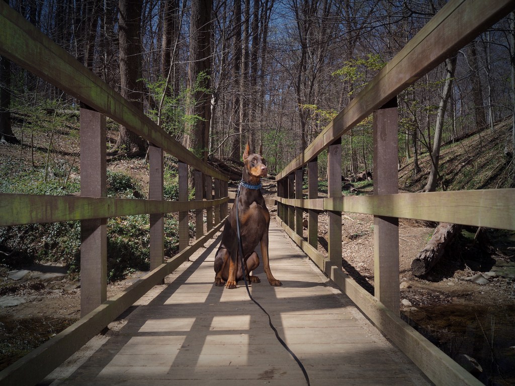 Early spring means that we can enjoy tranquil walks in the nearby forest with cool temperatures and just the barest hint of green dotted the trees. Of course, Beau loves the woods – so many smells to smell, creeks to ford, and trails to explore.