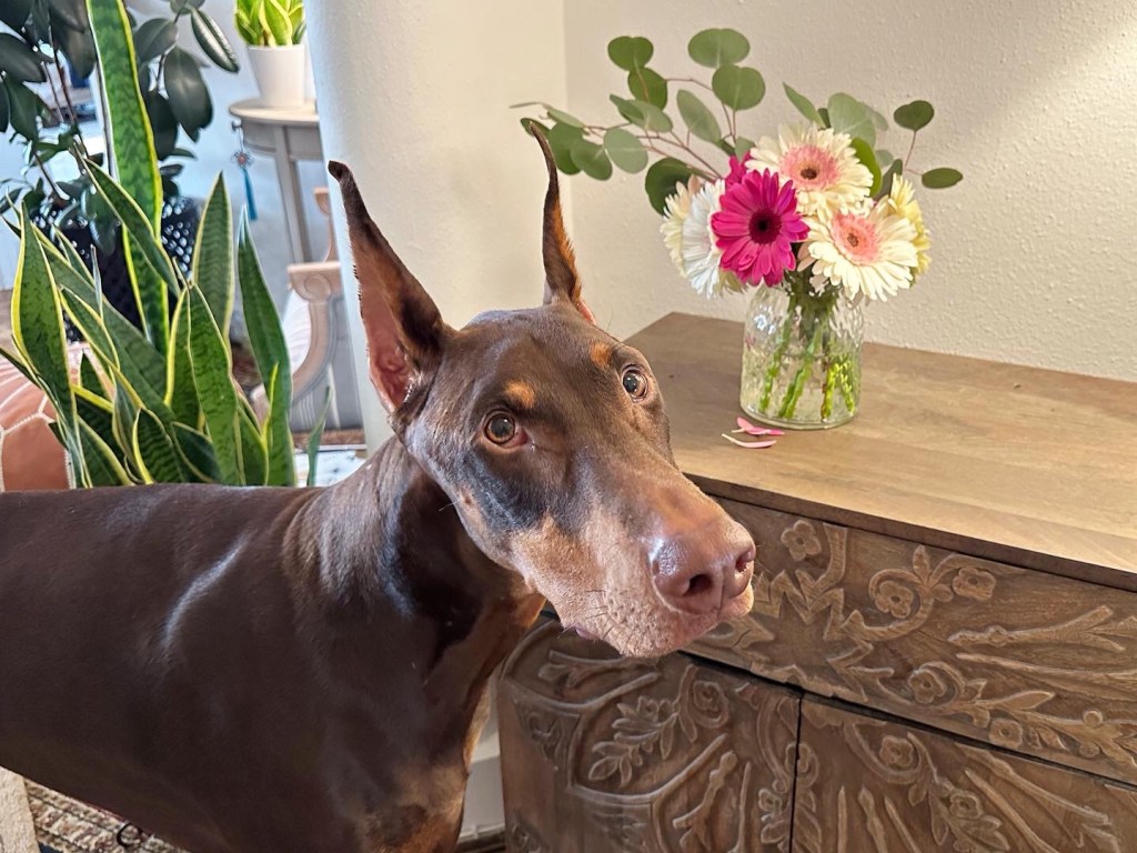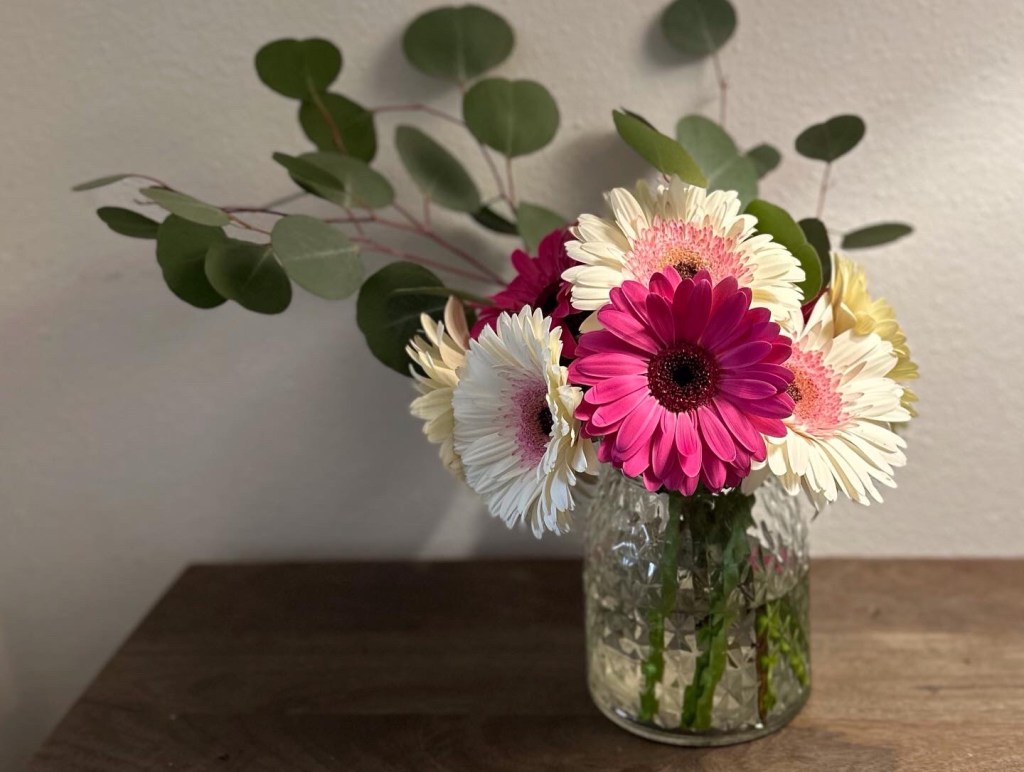 Finally, Beau gave his expert consultation when it came to arranging some Gerbera daisies and eucalyptus stems.