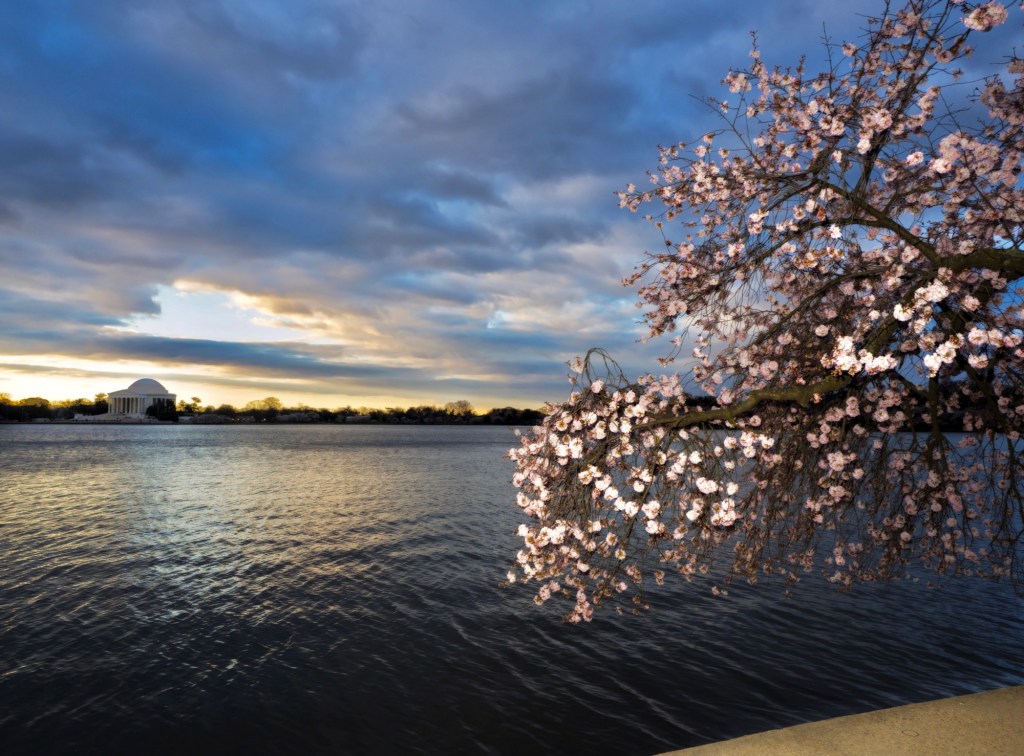 With the pending Parks Service project to uproot about 150-300 cherry trees, Beau and I got up extra early to meet friends at the Tidal Basin to enjoy sunrise over the peak bloom of the cherry trees that ring the water.